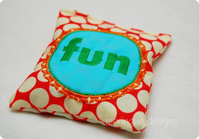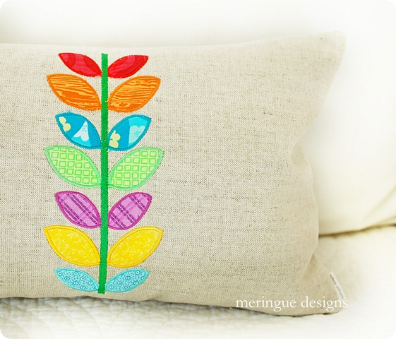 I’ve had a tutorial before about appliquéing letters, but here’s another appliqué tutorial, with a few more instructions this time. This time the sample item is my Technicolor Vine appliqué design.